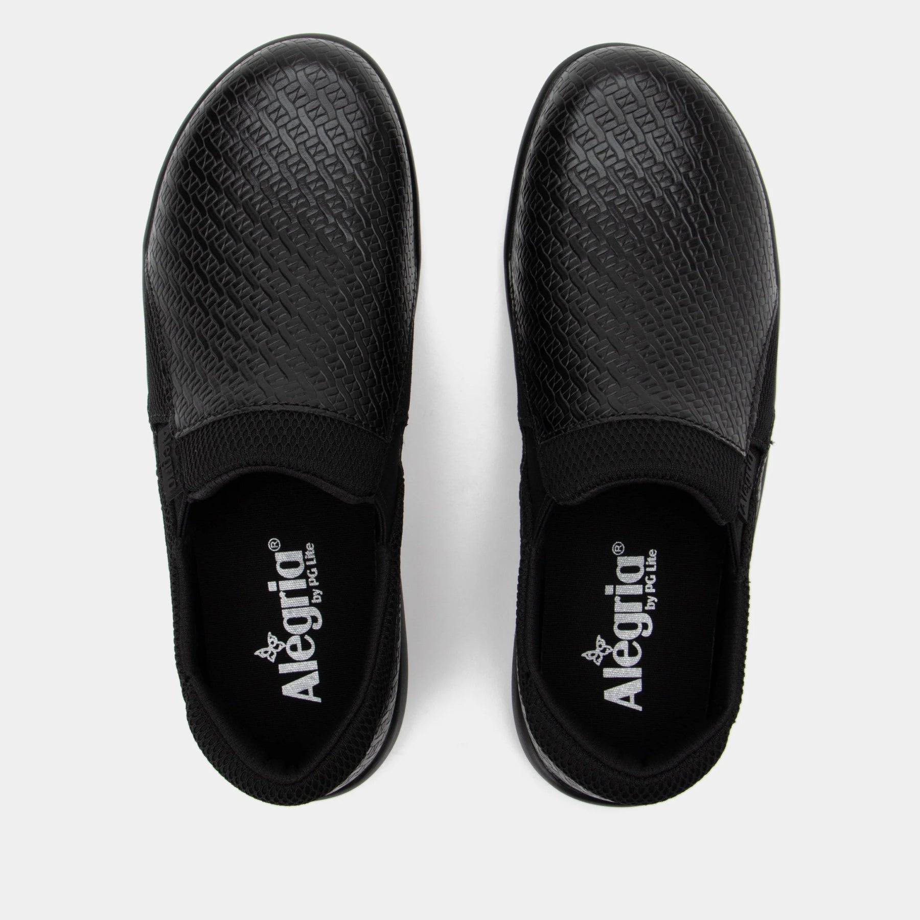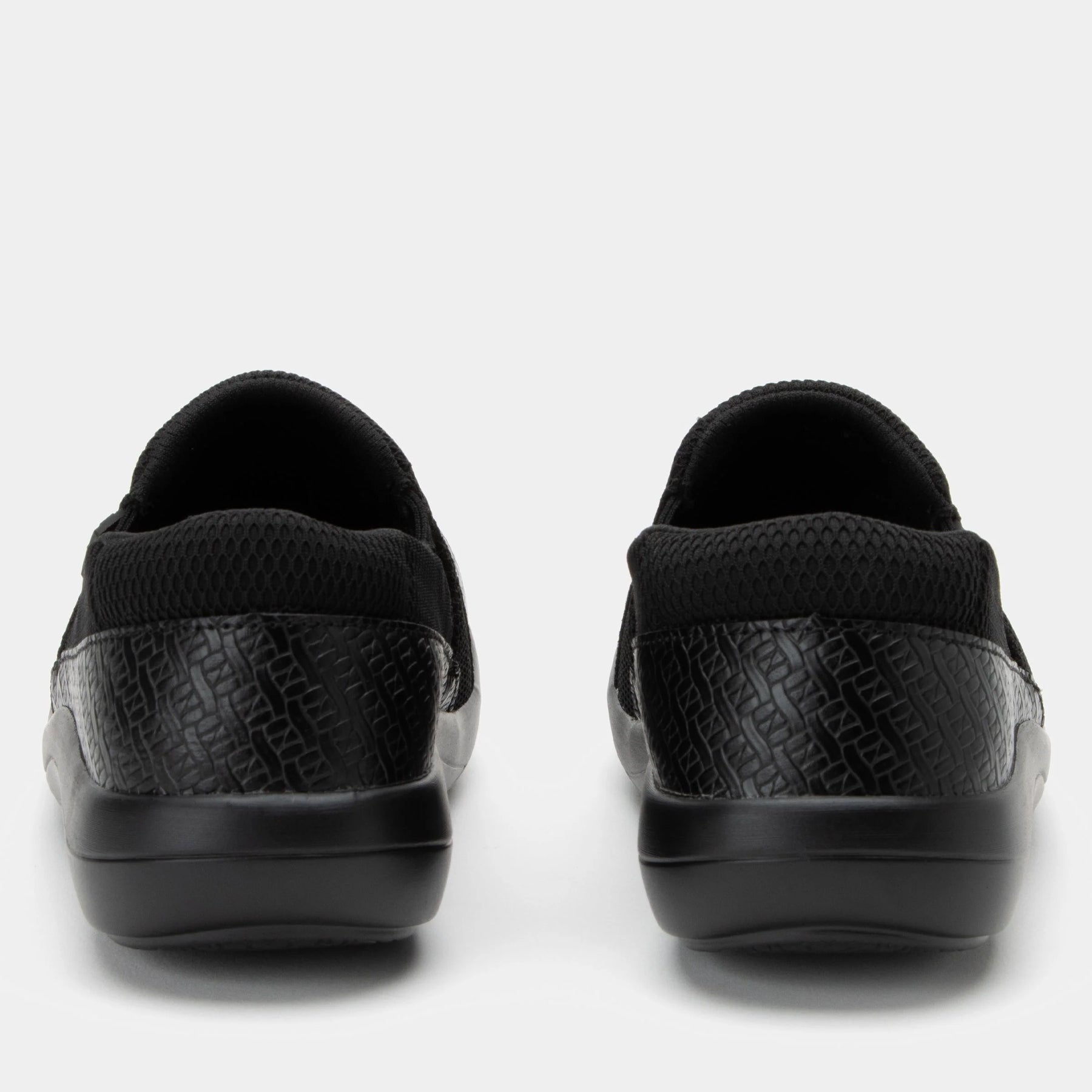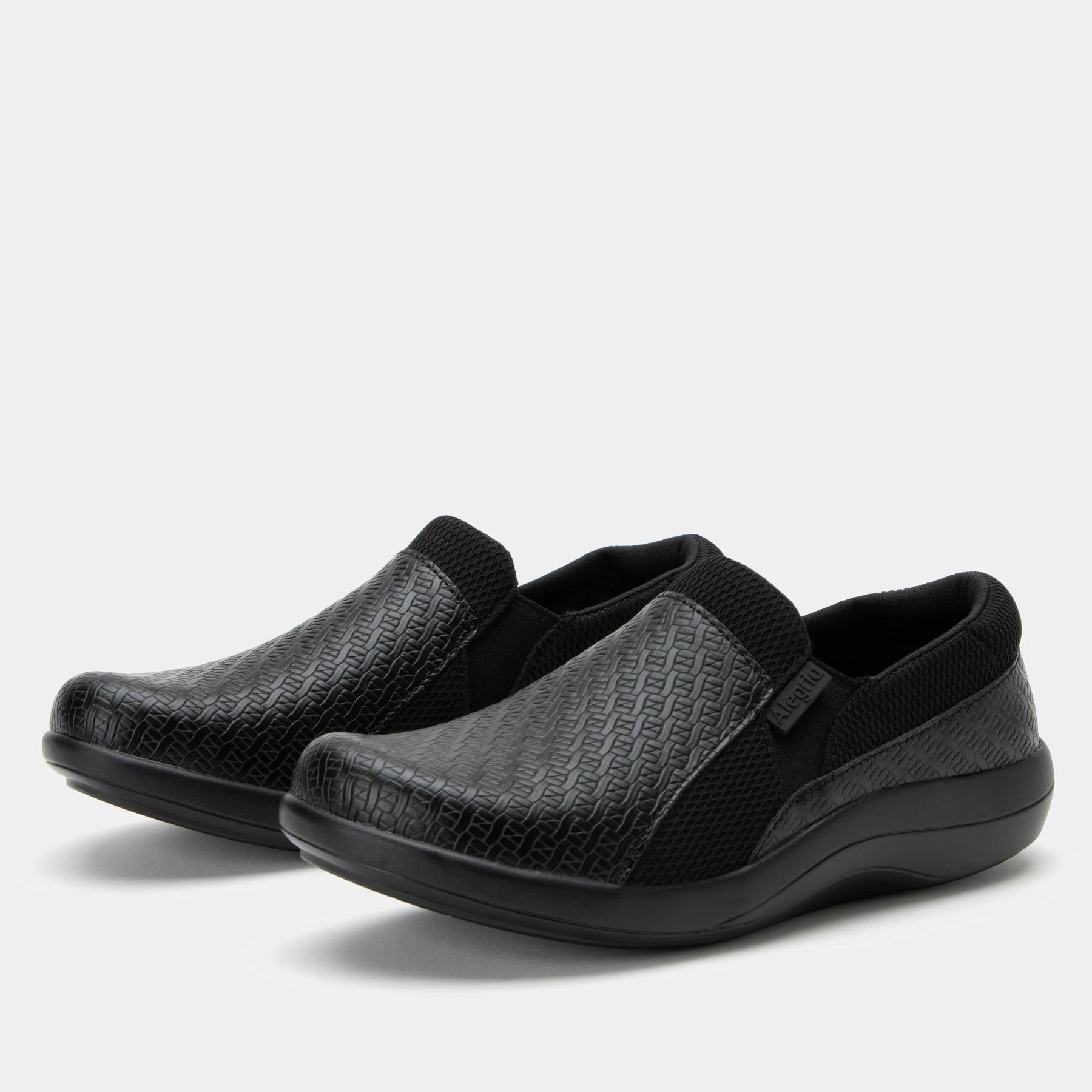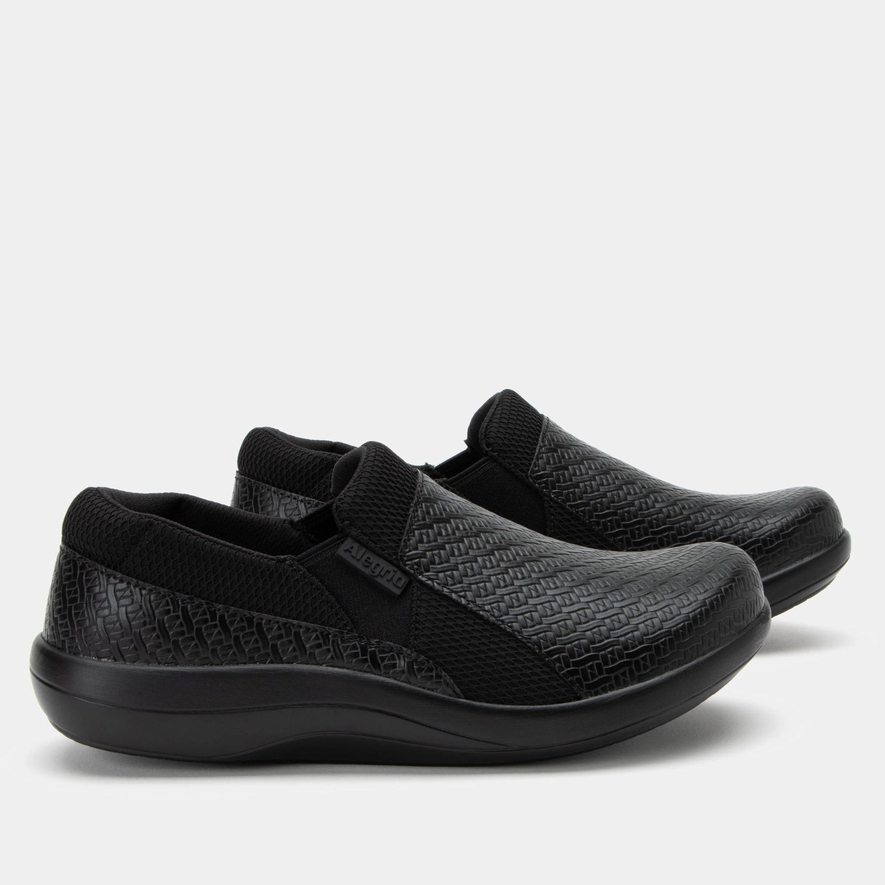 Featured with embossed Black Woven design on vegan leather for all-day comfort.