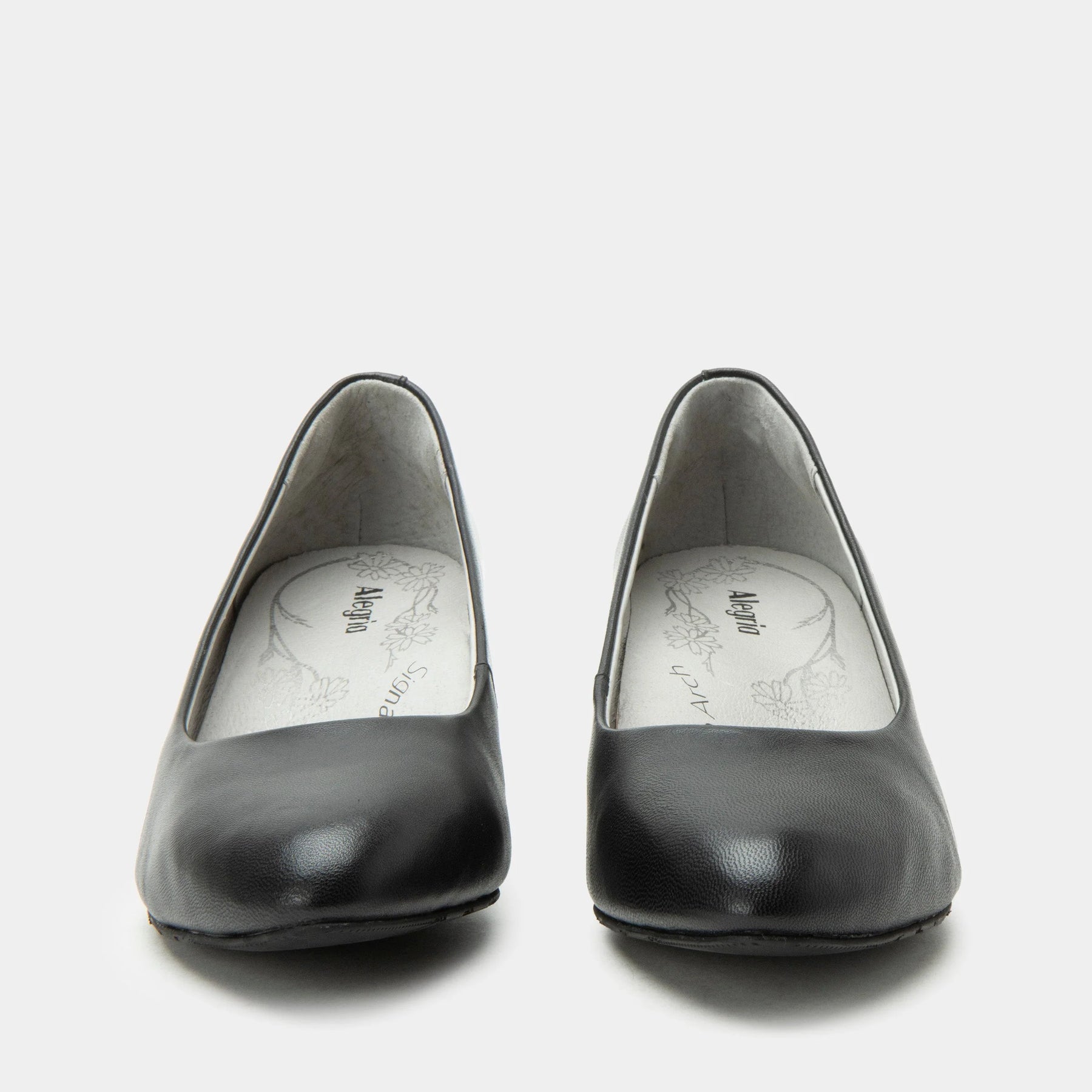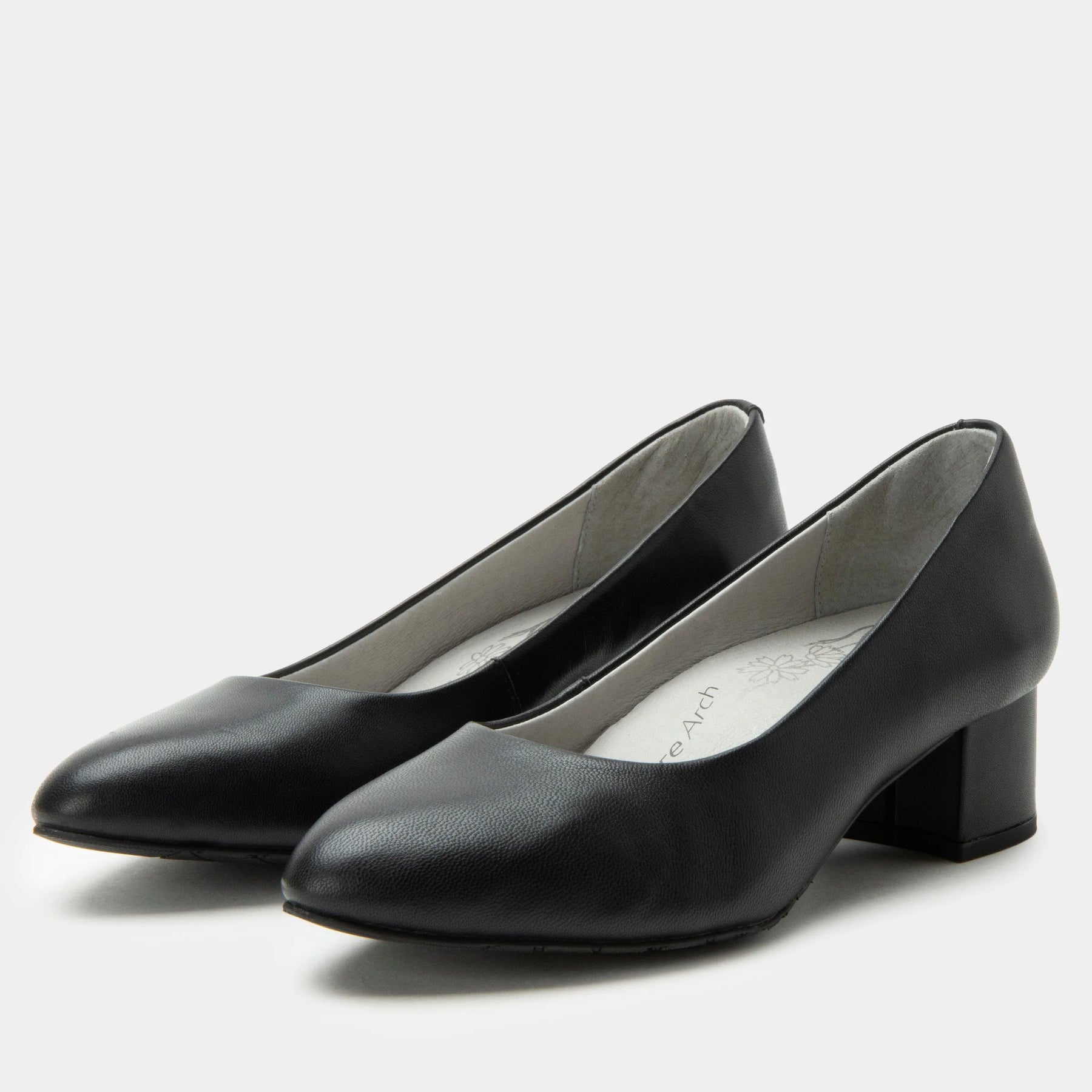 Alegria Women’s Lisah black leather comfort pump with low block heel, slip-resistant sole, and Signature Arch™ footbed for superior arch support.