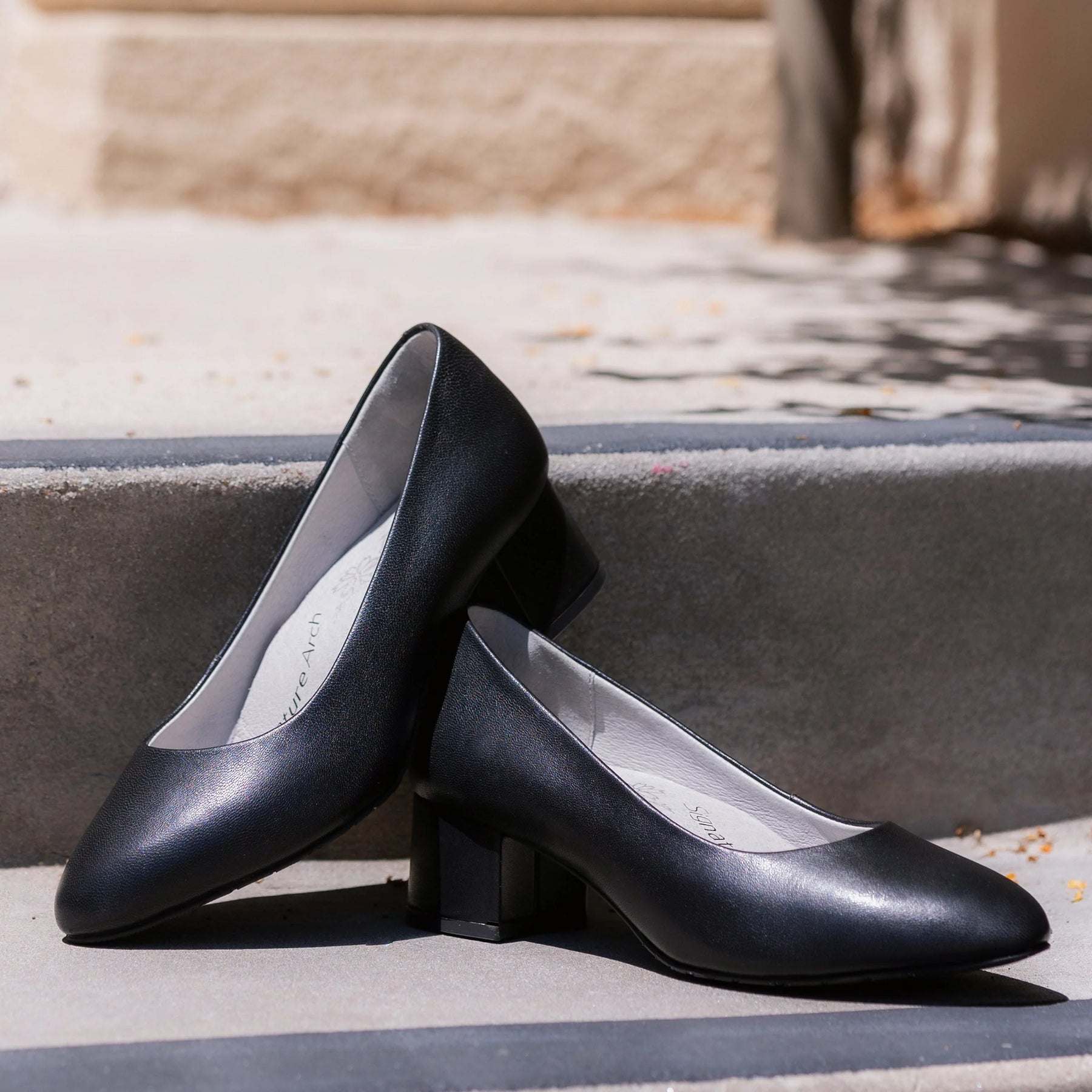 Lisah women’s leather pump heels combine elegance with exceptional comfort. Featuring a low heel design for maximum comfort and mobility, these women’s comfort pumps allow you to stay stylish without sacrificing support. Perfect for office wear, formal events, or casual outings, they come equipped with a proprietary arch support footbed that provides superior arch support and comfort, while the heel cushioning absorbs impact to keep your feet feeling fresh.