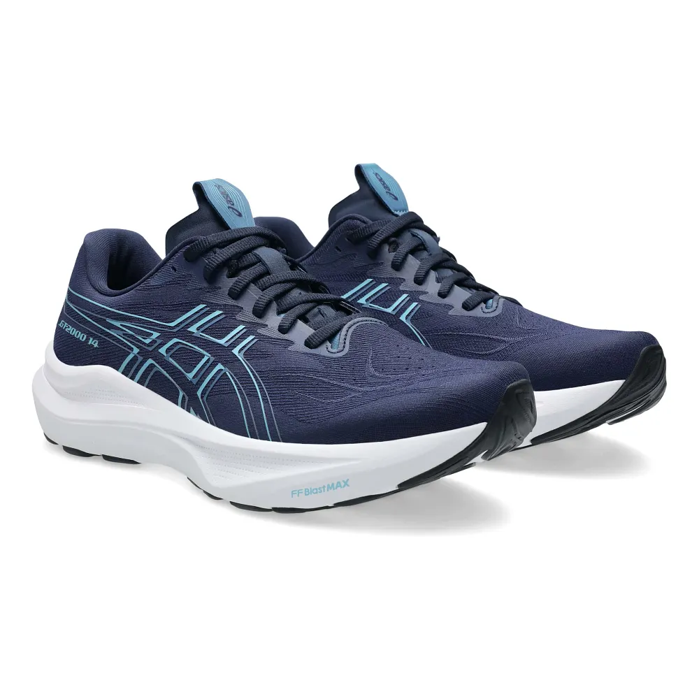 Men's ASICS® GT-2000 14 :: Built for support without the bulk, your freshly updated Men's ASICS GT-2000™ 14 running shoe keeps you cruising steady and smooth. A 3D GUIDANCE SYSTEM™ stabilizes your stride while Rearfoot PureGEL™ softens impact so you can roll through your run with ease. The FF BLAST™ MAX midsole adds energetic rebound, and a trampoline-inspired outsole pod helps you power through toe-off. From heel strike to finish line, your GT-2000 14 is a modern stability shoe that moves with you-not against you. Lighter, smoother, and more breathable than ever.