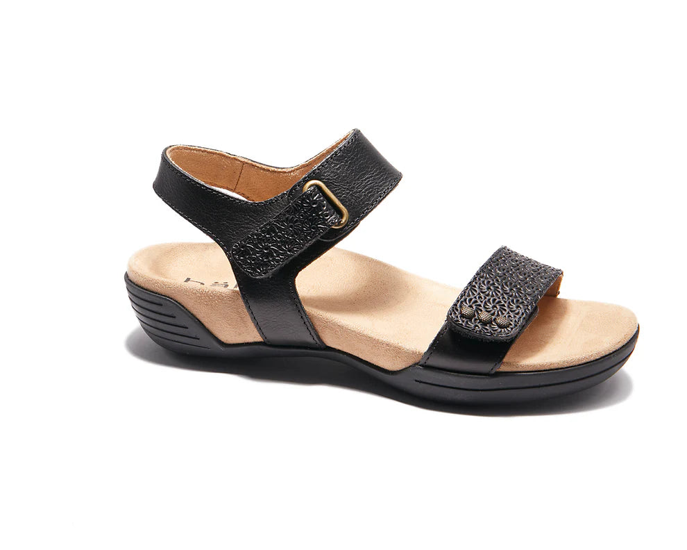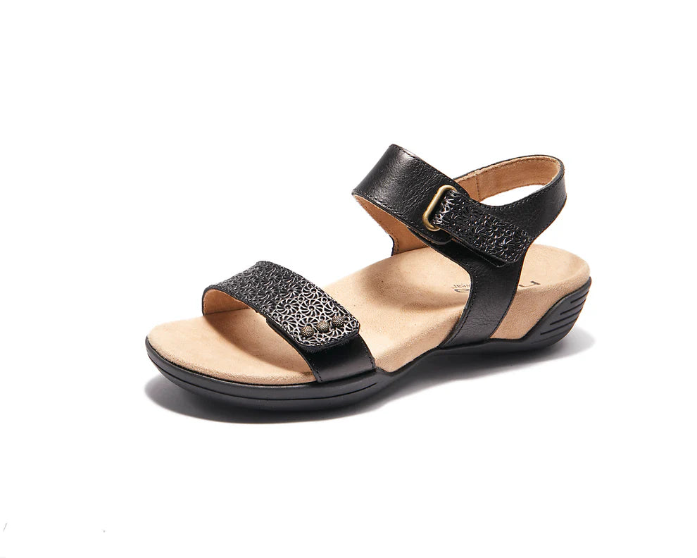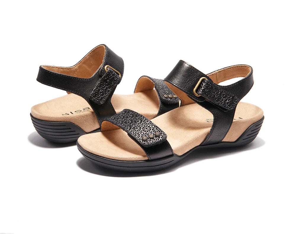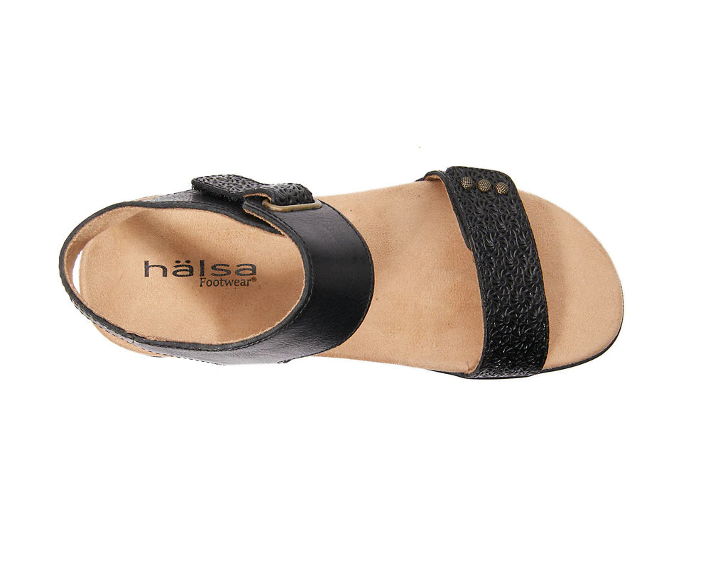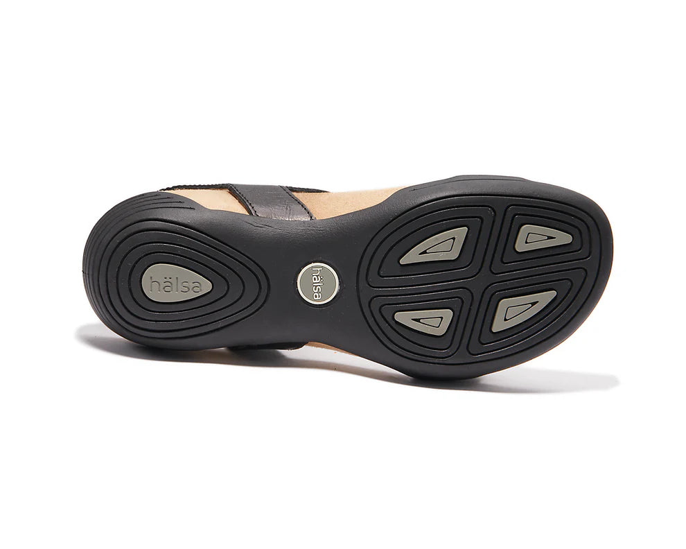 The Hälsa Dominica leather Quarter strap sandal brings you comfort and style with ease. Fully adjustable hook-and-loop fasteners at toe and quarter strap with decorative buttons. With its Equilibrium + Technology will keep your feet properly aligned and supported throughout the day