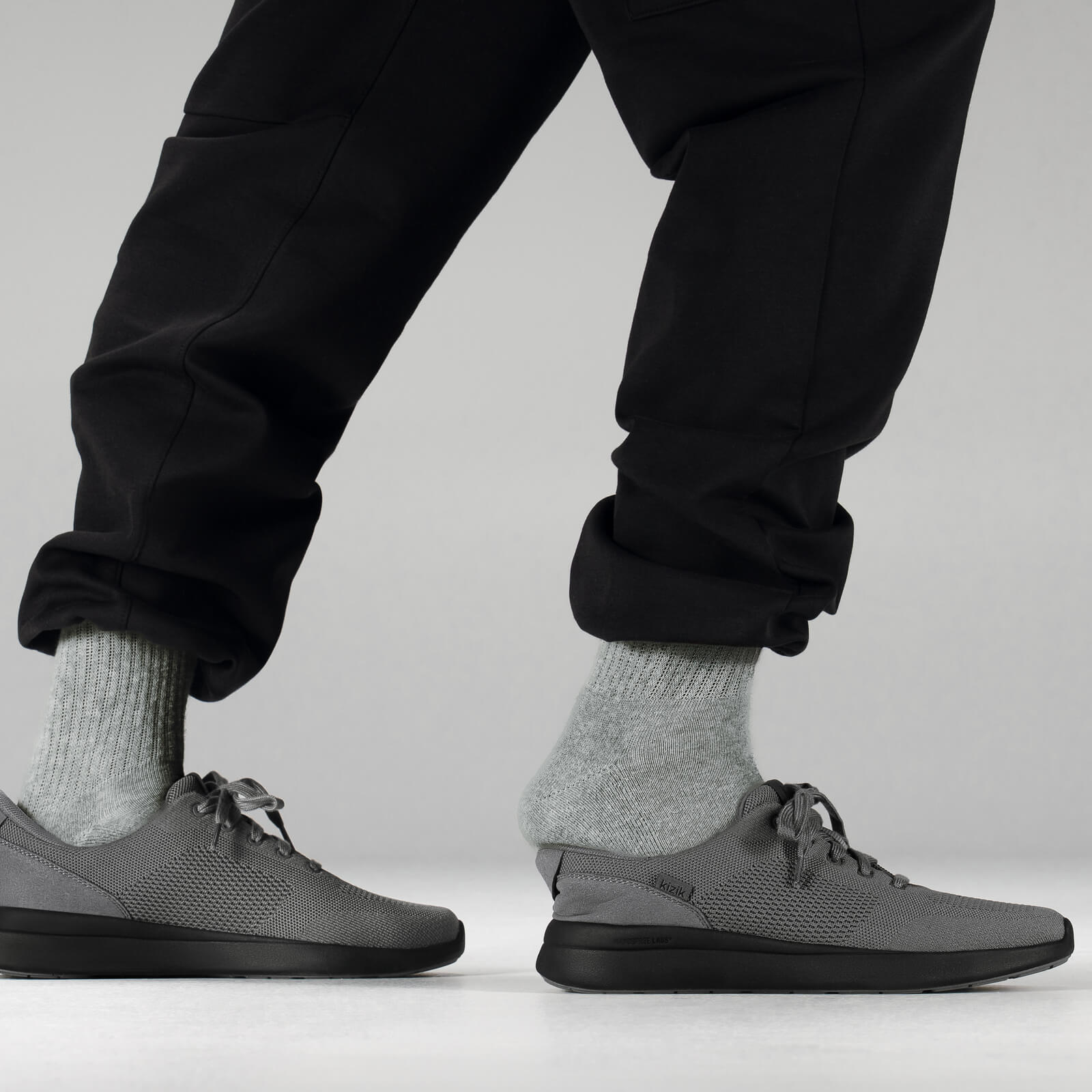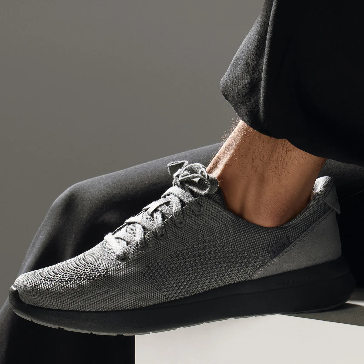Kizik Lima 2 men’s hands-free sneaker in smoked pearl gray with breathable stretch knit upper, cushioned foam midsole, and easy step-in design. Lightweight casual walking shoe with relaxed fit.