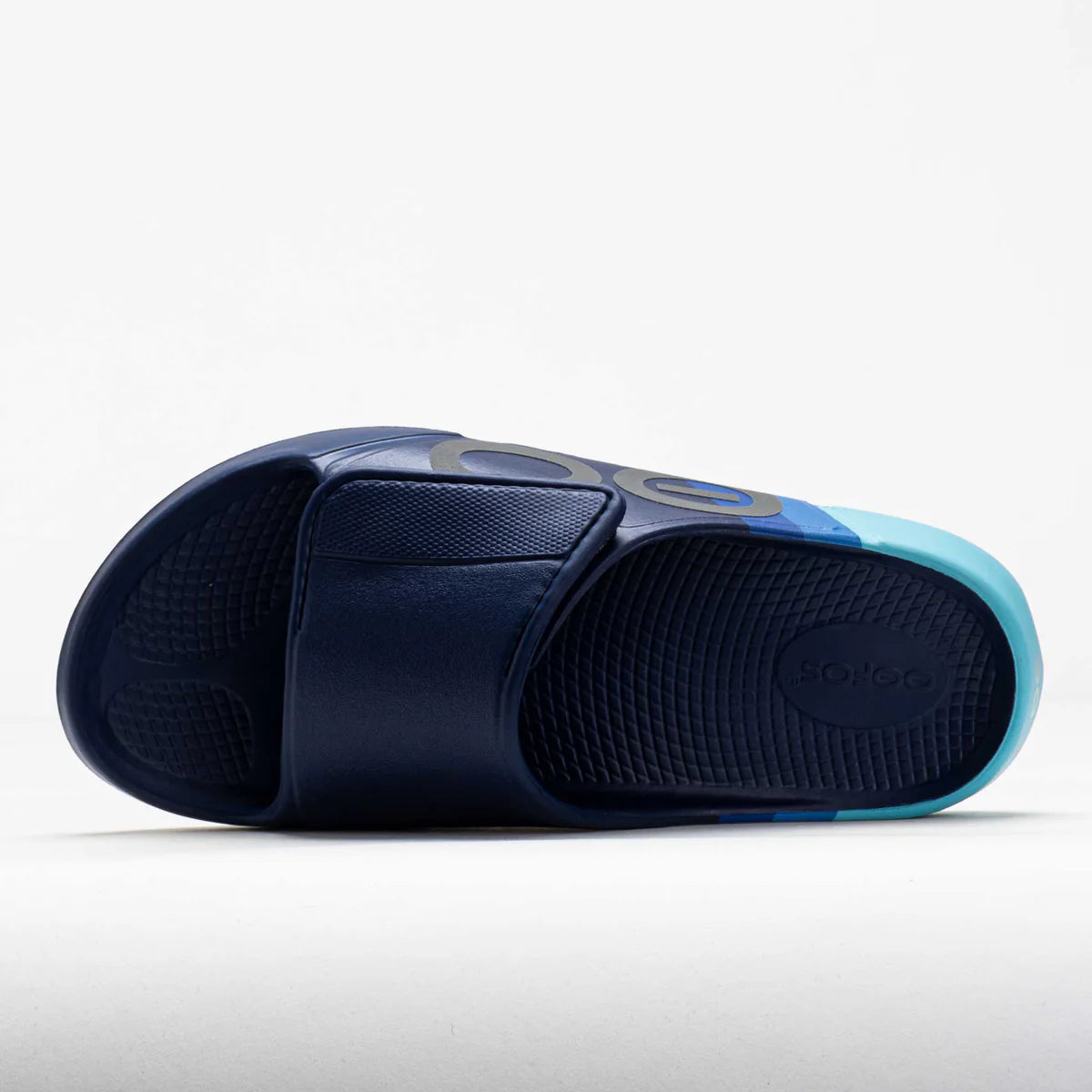 Keep your hard-working feet comfortable in OOFOS OOahh Sport Flex Limited Edition sandals. Featuring OOfoam™ technology, these recovery slides absorb 37% more impact than traditional footwear. This special technology reduces the stress on your feet after physical activities. A contemporary spin on the classic slide, the OOFOS OOahh Sport Flex Limited Edition features a sleek adjustable strap for a perfect all-around fit.