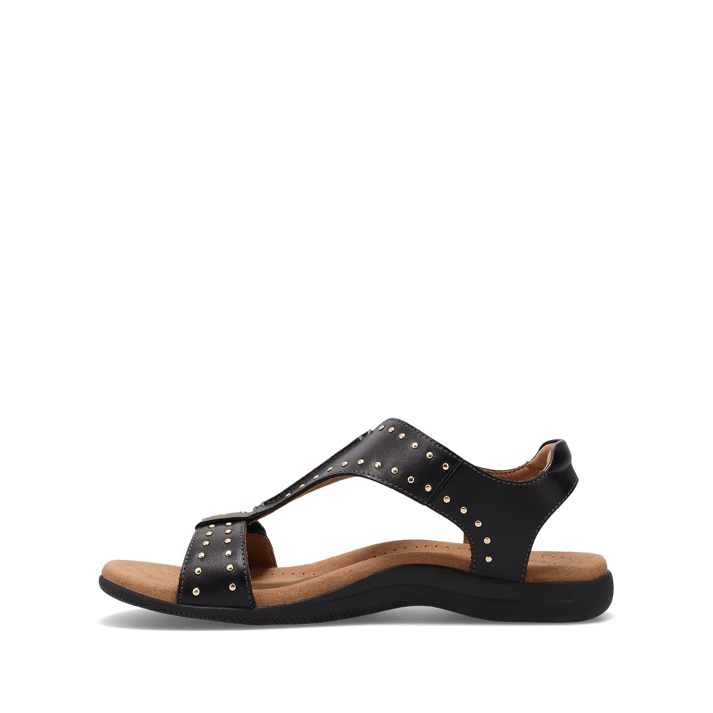 All eyes will be on the new Show Stopper! Gold mini studs add a bit of bling to our patented shield strap design with two adjustable hook and loop straps - making them perfect for sunny day strolls and a chic finishing touch for nights on the town! Enjoy luscious soft leather and an embossed microfiber footbed with an antimicrobial shield that keeps your feet cool and dry. The soft Cool Recovery Foam® padding of our Soft Support™ sandal collection provides maximum shock absorption with flexible and durable rubber outsoles.