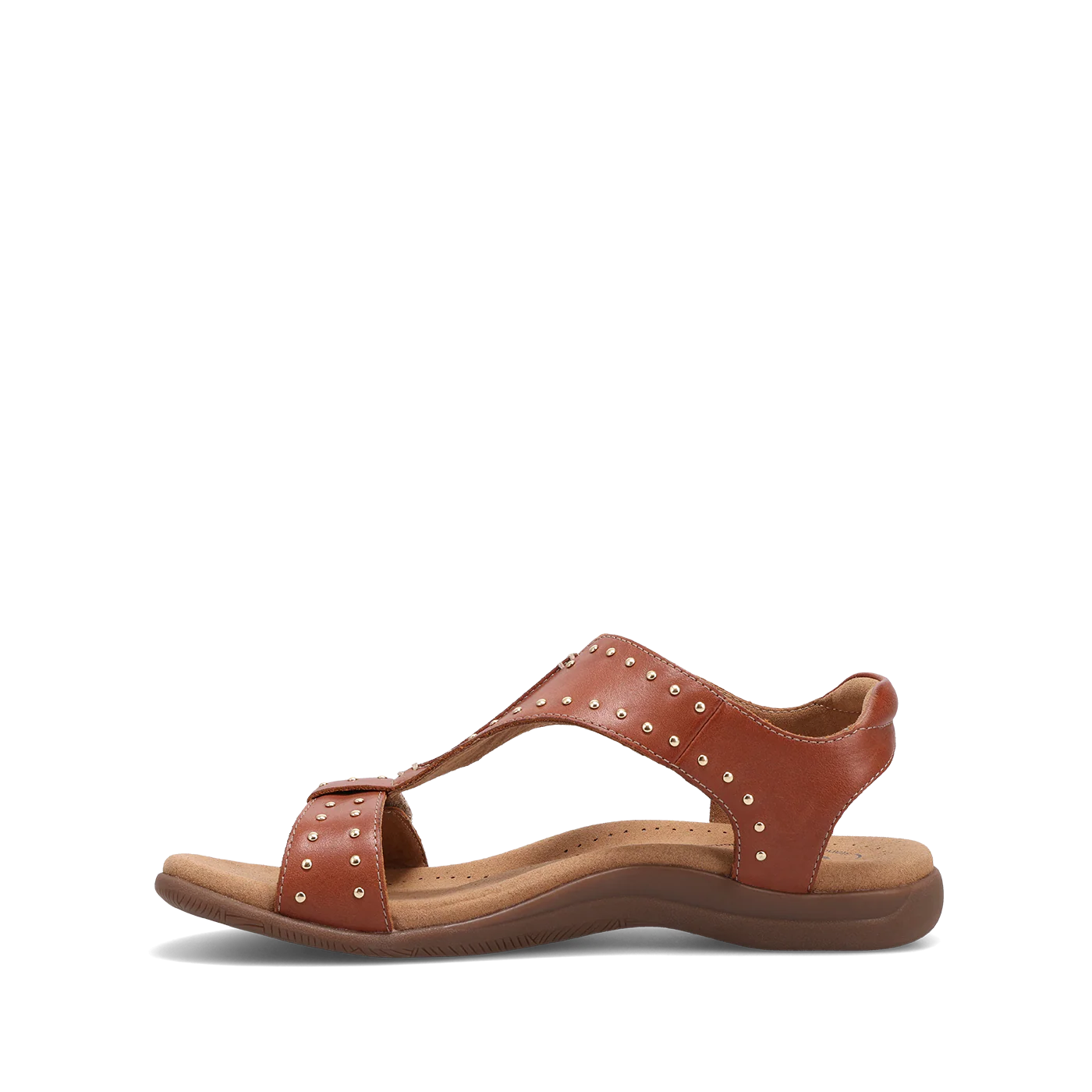 All eyes will be on the new Show Stopper! Gold mini studs add a bit of bling to our patented shield strap design with two adjustable hook and loop straps - making them perfect for sunny day strolls and a chic finishing touch for nights on the town! Enjoy luscious soft leather and an embossed microfiber footbed with an antimicrobial shield that keeps your feet cool and dry. The soft Cool Recovery Foam® padding of our Soft Support™ sandal collection provides maximum shock absorption with flexible and durable rubber outsoles.